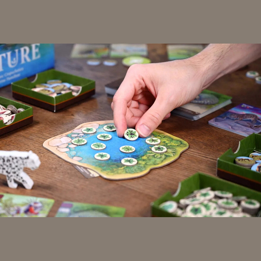 Nature is a redesign of the blockbuster Evolution to be more streamlined, more forgiving, and seamlessly expandable. The secret sauce is a modular system that allows players to create and explore a unique ecosystem each time they play.
