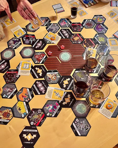 Heroes of Barcadia is a fast-paced, tile-building, dungeon-crawling party game for 2–6 players, featuring a deliciously clever twist: your hero’s health is determined by the amount of drink left in your cup. Using the game’s signature Liquid Life System™, you choose your “HP” whether that’s soda, juice, water, or something a little stronger.