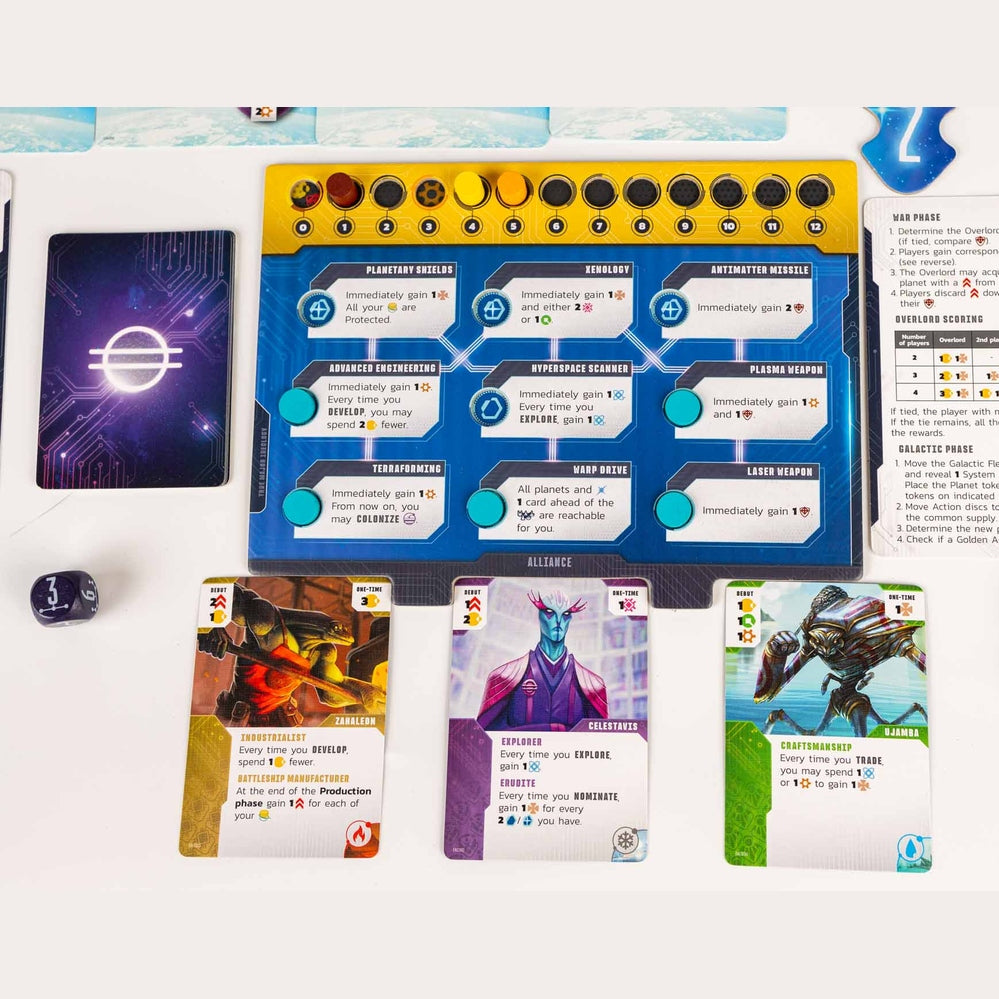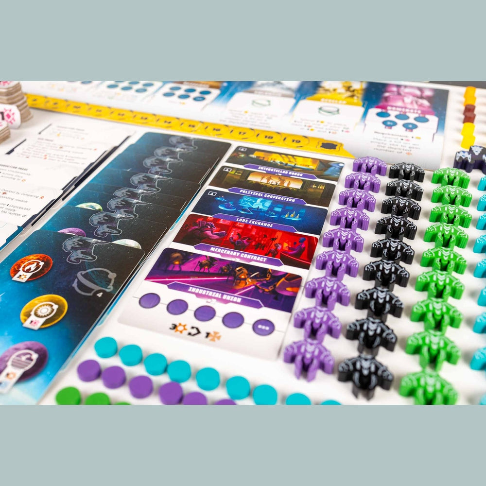 This second edition of Age of Galaxy introduces an enhanced solo mode, new graphic design, and improved components to enrich the gameplay experience.