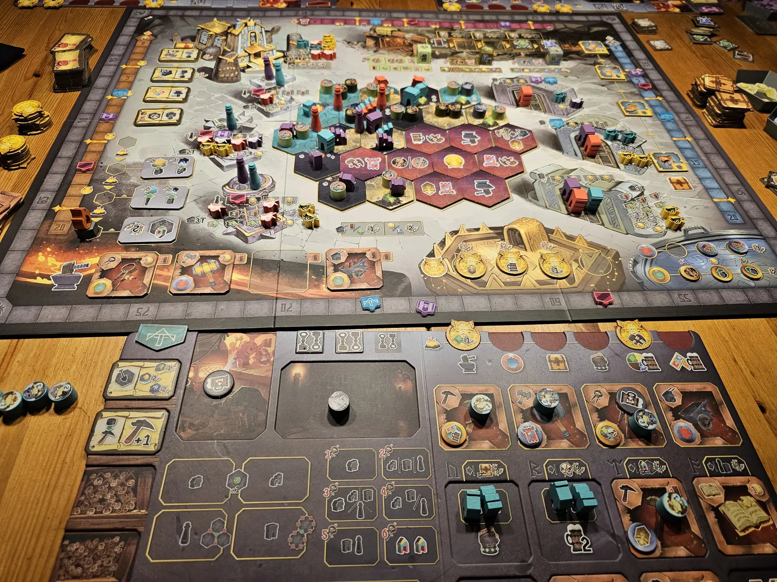 Covenant is played in turns over three ages. During their turn, players will assign the Dwarves of their clan to different tasks that will allow them to explore the ancient halls of the ancestors and drive out their enemies while rebuilding their ancestral home. Your dwarf tokens and tools will allow you to do all kinds of actions: dig into the mountain, defeat the enemies that live there, and build all kinds of buildings that will bring the legendary dwarf city back to life. At the end of the game, the clan that has accumulated the most glory will take the recognition of the monarch and the victory.