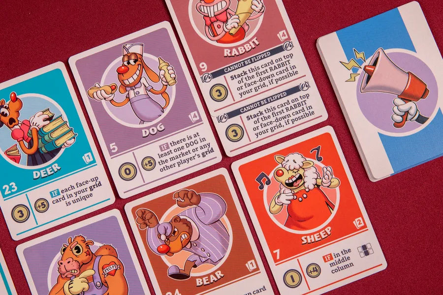 After each Flip, tally up your current grid of toons’ Fame points, then spend them to hire more stars for your cast. Purchase these new toon cards from the market and add them to your deck. Or, spend some of your Fame to dismiss a card, and get that bad actor off the stage. Sorry kid, you just don’t have what it takes to be a star in this show.