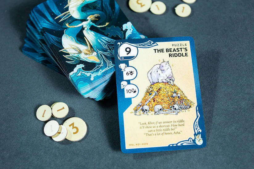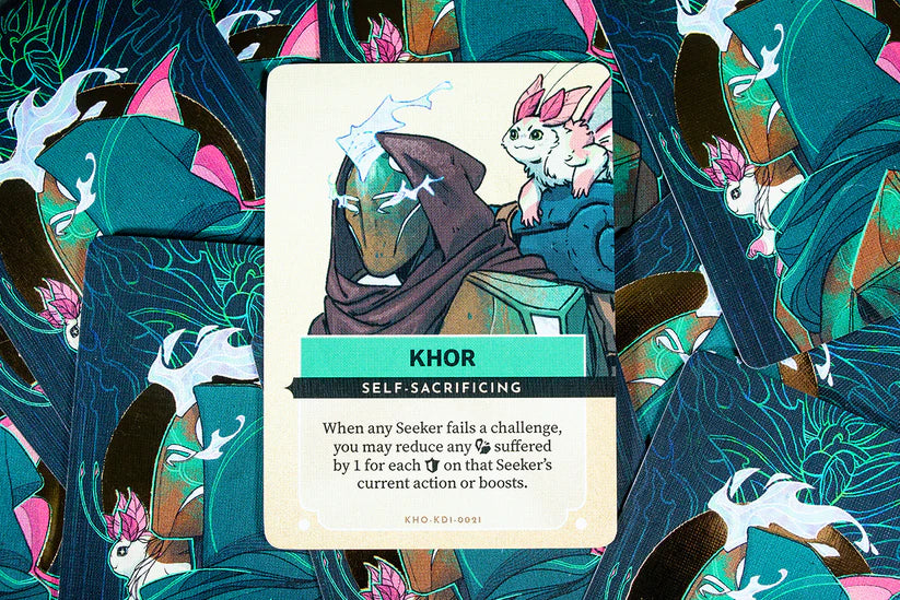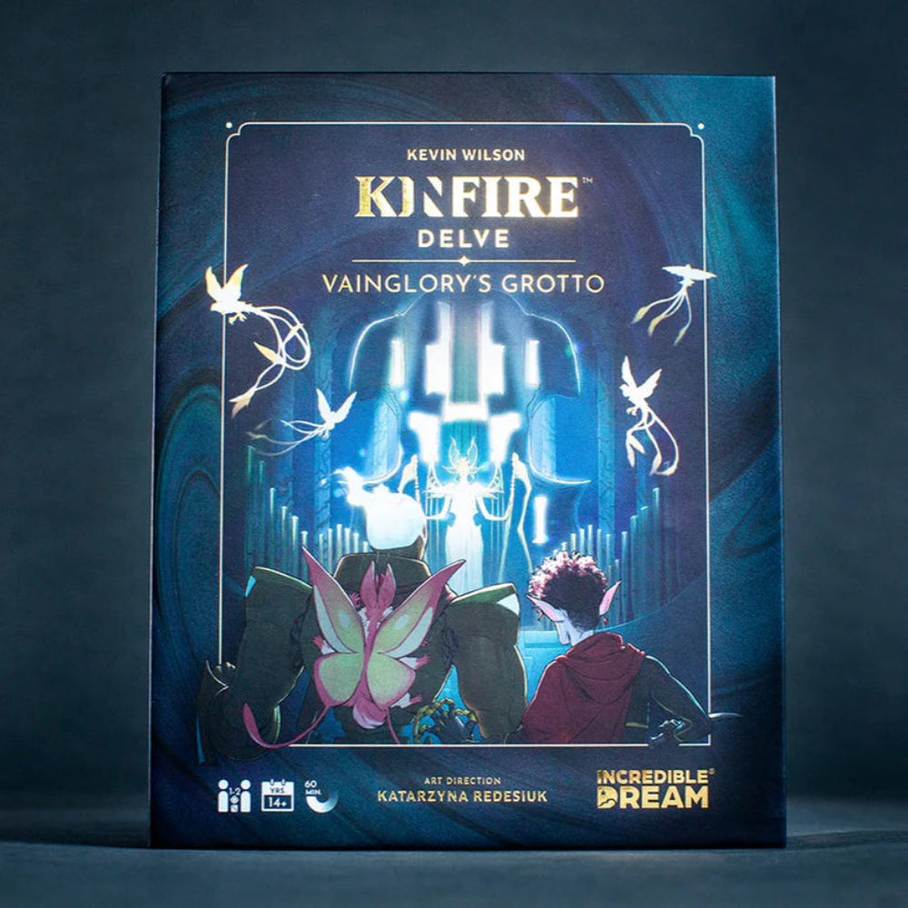 Kinfire Delve: Vainglory's Grotto is a tactical and cooperative card game. As Seekers, you will fight your way through the well deck of challenge cards to reach Vainglory, the master of the well, and face her in an epic final battle.