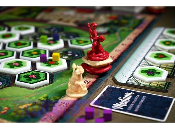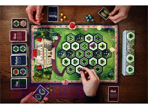 Every turn, together as a team you must guess at least one of these secret whim cards. You can't say what your card shows, but by carefully placing a new shrub tile into the garden (taken from those available in the Greenhouse) you are able to reveal clues, tokens that will show any matches between the arrangement in the garden and the secret whims each player holds in their hands.