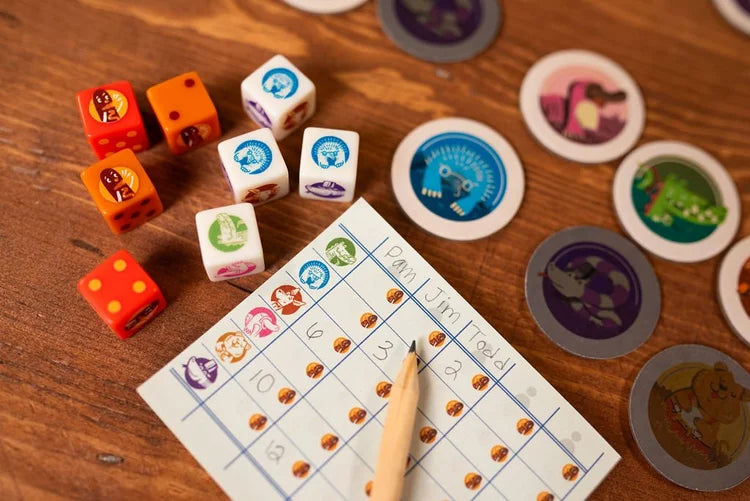 The game is played over six rounds, with players taking turns in clockwise order. On your turn, your goal is to roll and re-roll dice to get many of the same Critter together with high values on the Food dice.