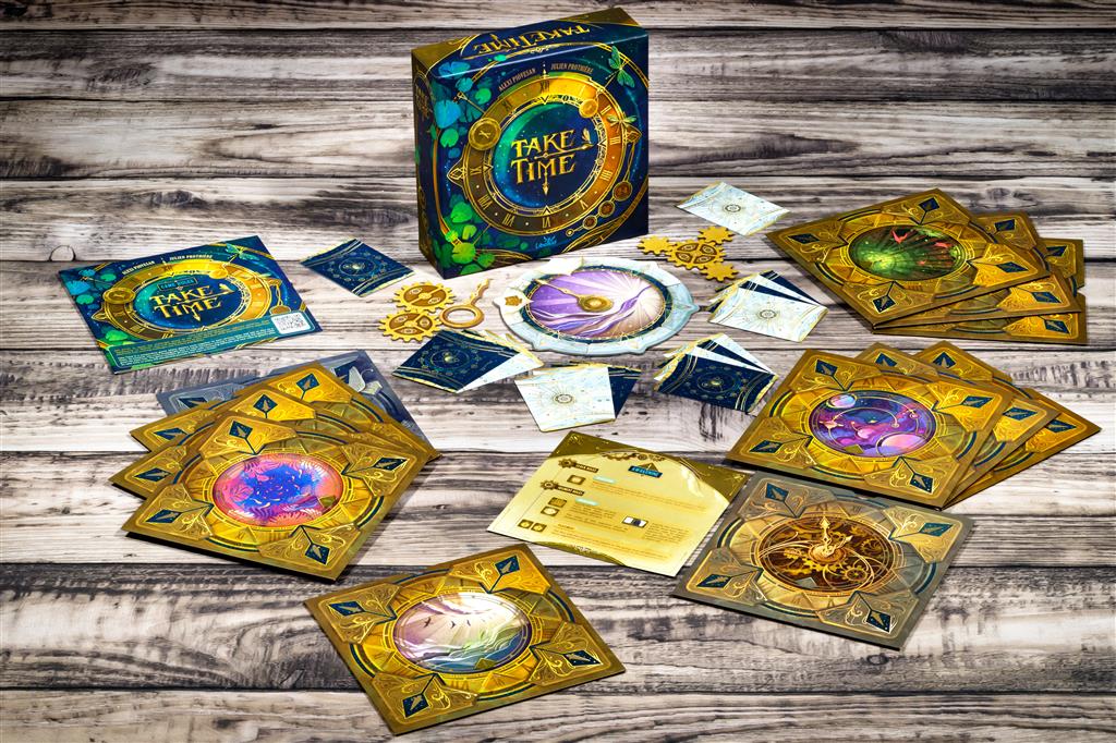 Take Time is a cooperative card game that immerses players in a one-of-a-kind adventure, where each challenge unfolds within a unique illustrated world. Players move forward as a team through a series of symbolic realms, each one linked to a key moment in a poetic journey — from “Awakening” to “Rebirth.”