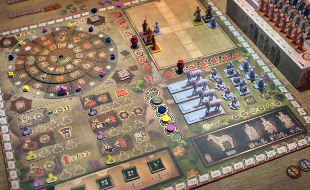 In Terracotta Army, you represent talented craftsmen and artists laboring to build the wondrous assembly of statues. During the game, you collect resources, upgrade your workers, and seek favor with the Emperor's advisors. Your goal is to play a crucial role in the process of creating the terracotta army, and your success is measured in victory points (VPs). During the game, you and your fellow players build the army together, but after the fifth round of the game is over, only one of you — the one with the most points — will stand as the winner.